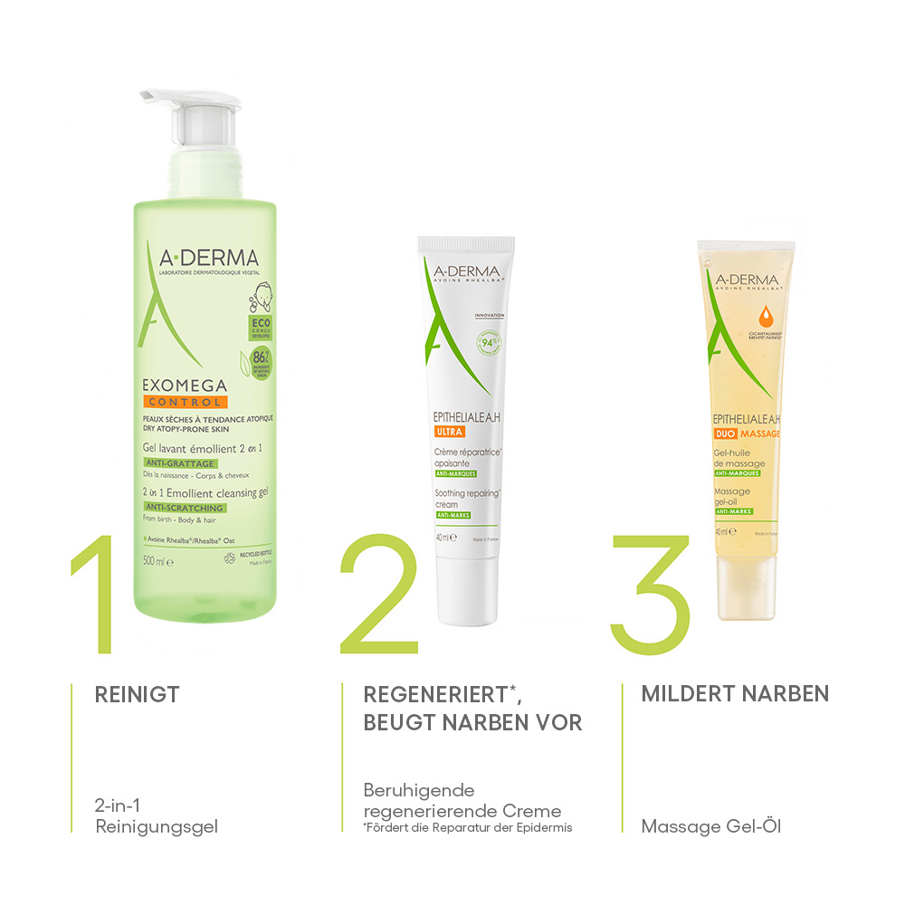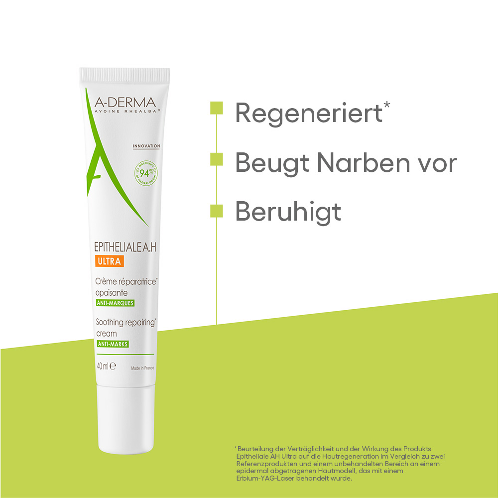 Dank des patentierten*** exklusiven Aktivstoffs Cicahyalumide® und des enthaltenen Uncaria tomentosa-Extraktes wirkt die innovative Formulierung EPlTHELIALE A.H ULTRA dreifach: Spendet Feuchtigkeit und fördert eine schnelle und ästhetische Regeneration der Haut, beugt Narben vor, beruhigt sofort und lang anhaltend unangenehme Hautempfindungen.