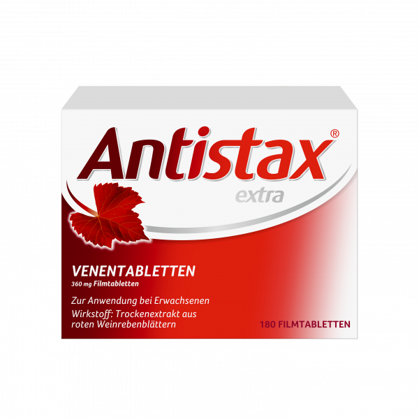 Müde, schwere Beine? Geschwollene Füße, Krampfadern und Kribbeln unter der Haut? Hier helfen Antistax® extra Venentabletten! Mit der medizinischen Kraft des Roten Weinlaubs reparieren, stärken und schützen sie die Venenwände nachweislich. Denn bei diesen und ähnlichen Symptomen einer Venenerkrankung ist ein wirksamer Schutz Ihrer Venen essenziell!