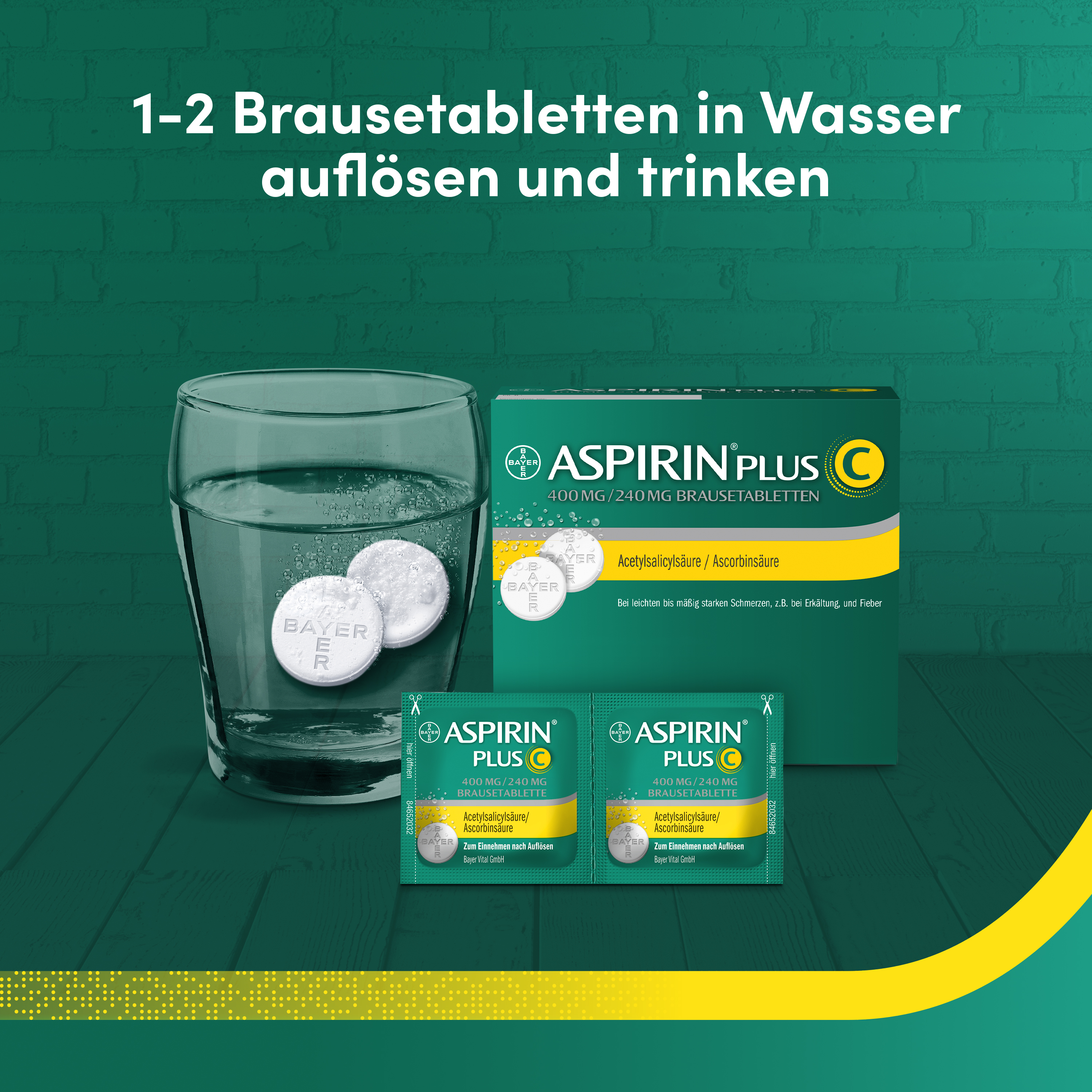 Der bewährte Wirkstoff lindert zuverlässig erkältungsbedingte Schmerzen und senkt das Fieber, sodass Sie trotz Erkältung voll im Leben stehen. Da das Medikament zudem Vitamin C zur Stärkung des Immunsystems enthält, werden auch die Erreger effektiv bekämpft. Zusätzlich punkten Aspirin Brausetabletten mit einer einfachen und problemlosen Anwendung, denn sie lösen sich schnell auf, was den Vorteil hat, dass die Wirkstoffe bereits im Wasser freigesetzt werden und Ihr Körper sie schneller aufnehmen kann. Das ideale Erkältungsmittel für Erwachsene und Kinder ab 9 Jahren!