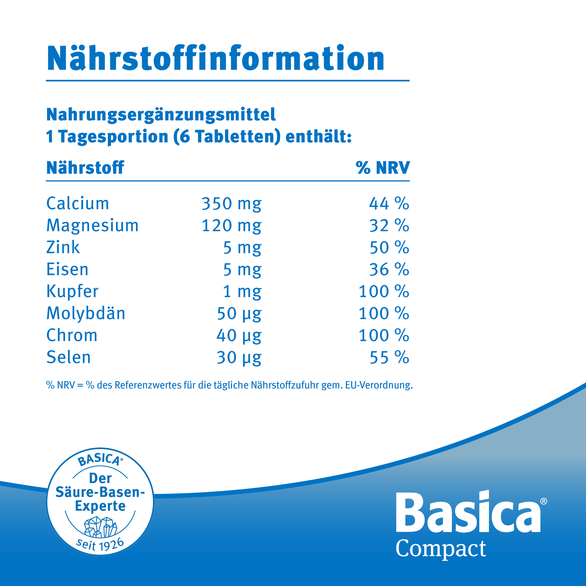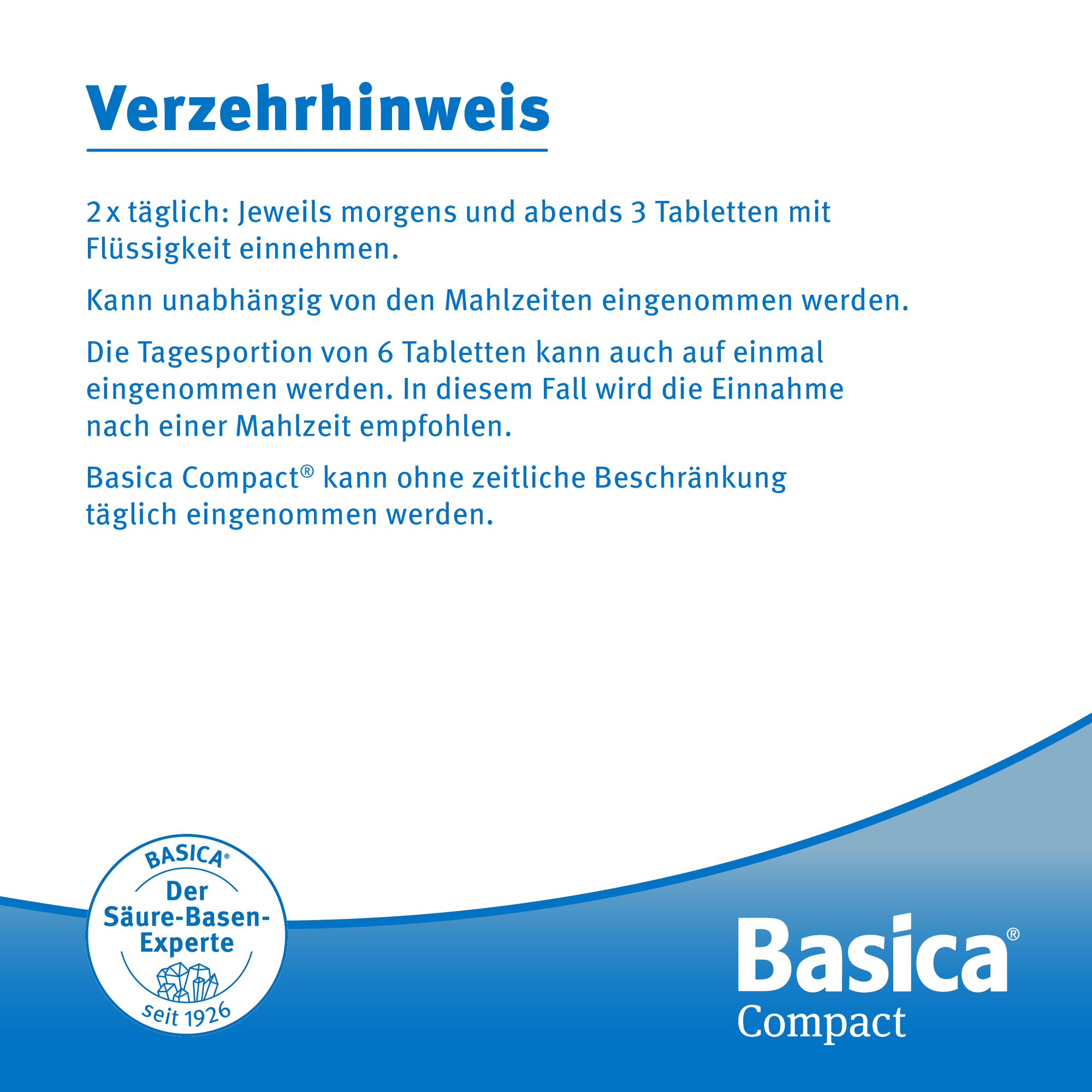 Basica Compact® sind kleine, leicht zu schluckende Tabletten. In der praktischen Dose ideal zum Mitnehmen.