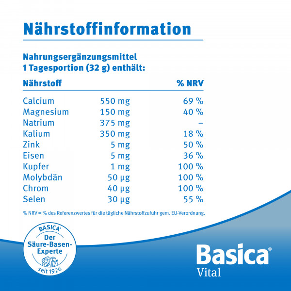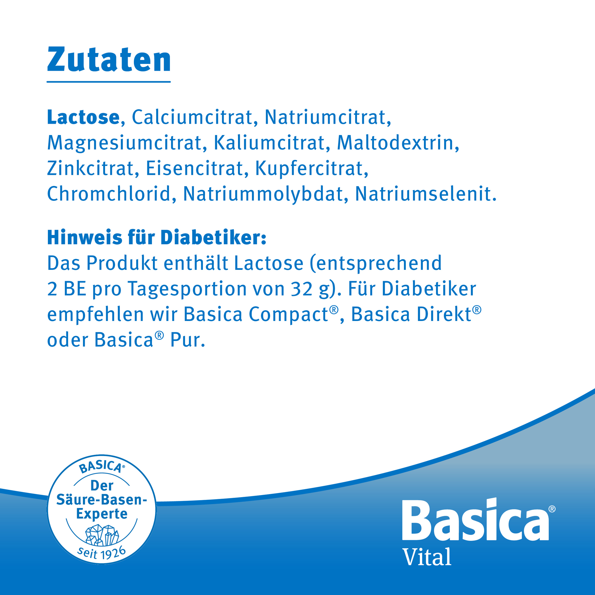 Granulat ist frei von Aroma- und Süßstoffen. Basica Vital® ist geschmacksneutral und wird in kalte oder warme Speisen