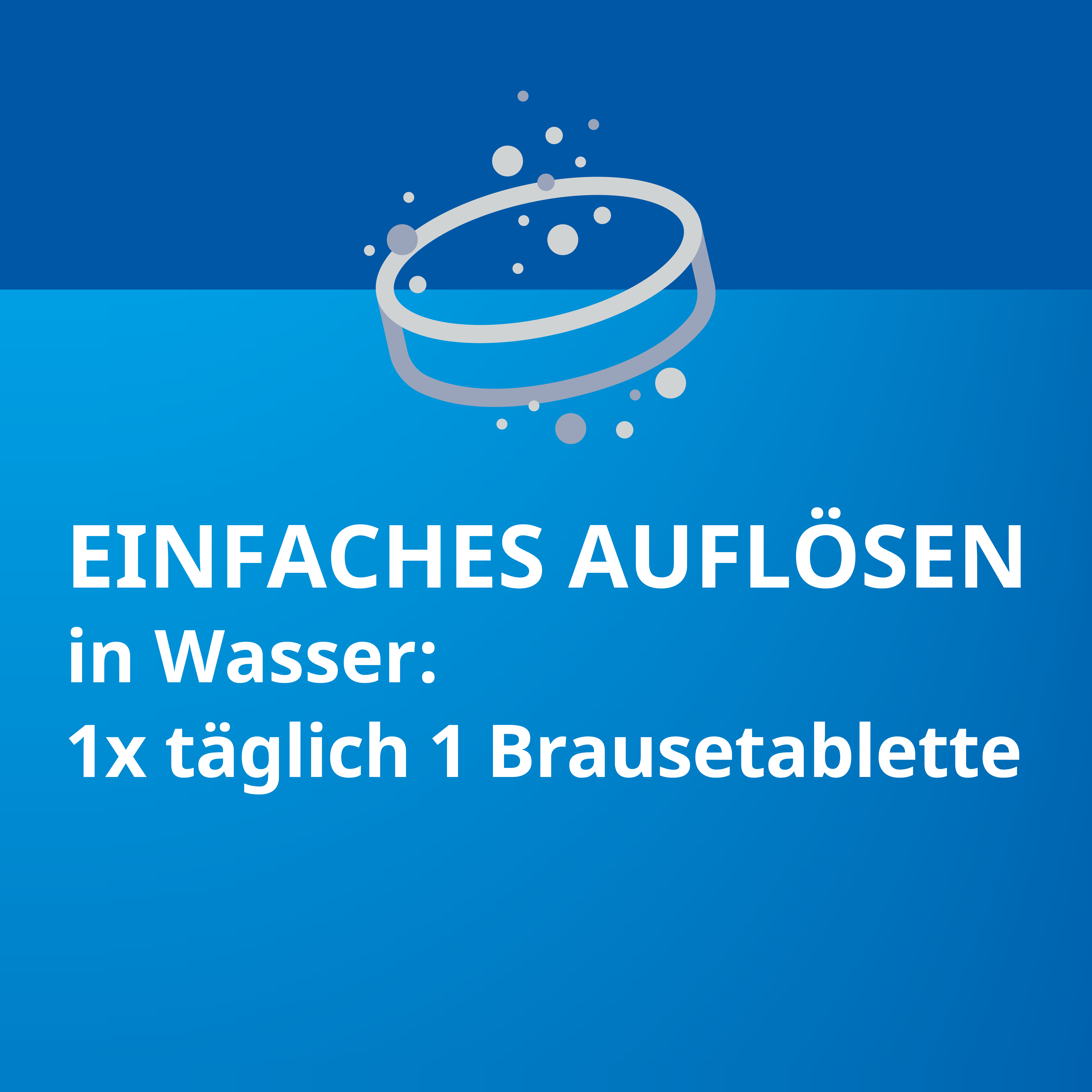 Die Einnahme ist einfach: Es wird empfohlen, 1-mal täglich eine Brausetablette zu einer Mahlzeit einzunehmen. Die Brausetablette wird in einem Glas Wasser aufgelöst eingenommen. Die Dauer der Einnahme richtet sich nach der Anordnung des Arztes.