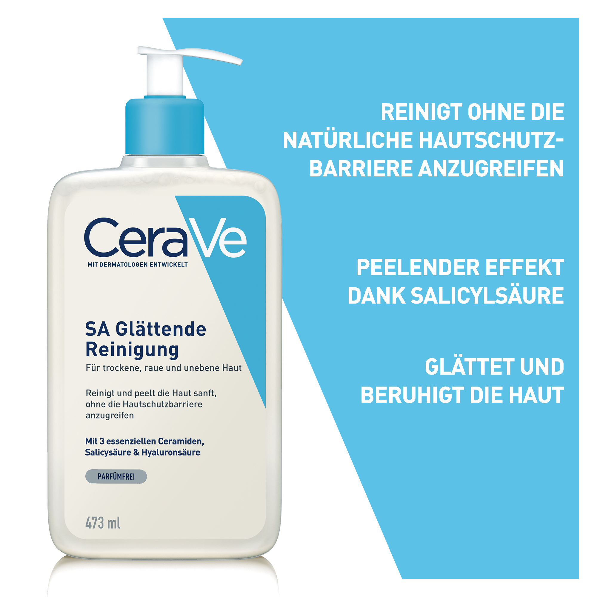 CeraVe SA Glättende Reinigung für trockene, raue und unebene Haut, reinigt und peelt, mit 3 essenziellen Ceramiden und Hyaluron