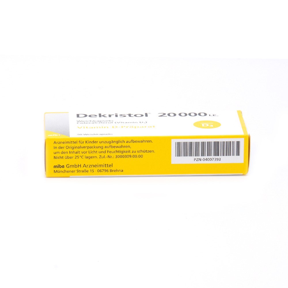 Dekristol 20 000 I.E. enthält Vitamin D3 (auch bekannt als Colecalciferol) zur Regulation der Aufnahme und des Stoffwechsels von Calcium sowie des Calciumeinbaus in das Knochengewebe.