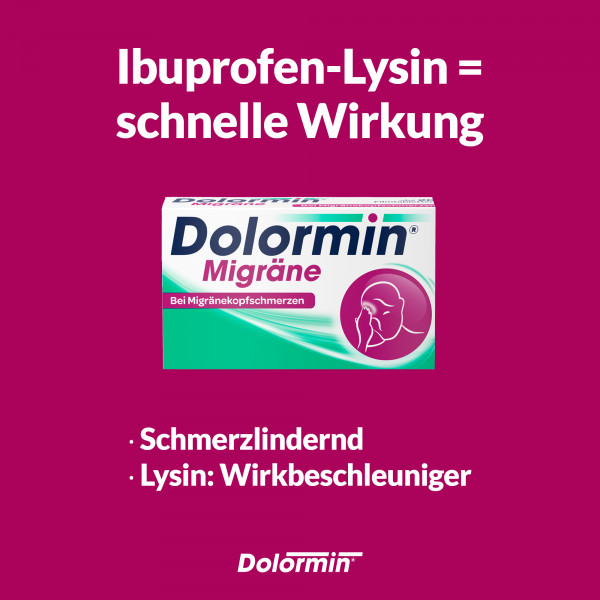 Der in Dolormin® Migräne enthaltende Wirkstoff Ibuprofen aus der Gruppe der nichtsteroidalen Antirheumatika eignet sich zur Behandlung von Migräneattacken