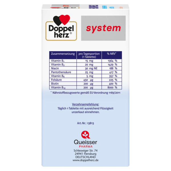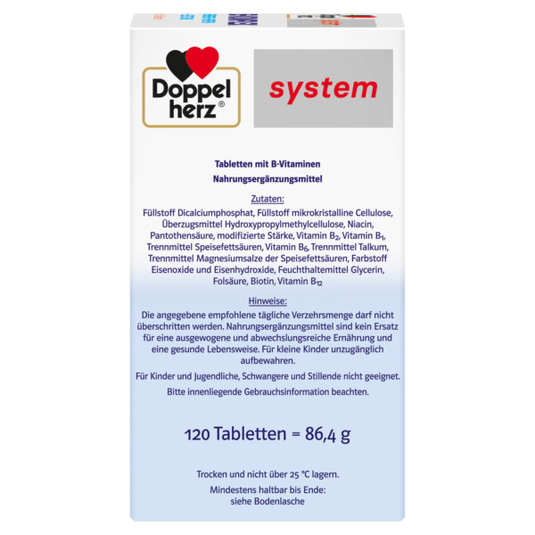Die Herausforderung und der Stress des Alltags erfordern Energie und starke Nerven. Die DEPOT-Tablette von Doppelherz system enthält alle 8 Vitamine des B-Komplexes und unterstützt bei einem erhöhten Vitaminbedarf die Versorgung. B-Vitamine erfüllen viele Aufgaben im Körper. Diese betreffen auch den Energiestoffwechsel, das Nervensystem und die geistige Leistungsfähigkeit. Bei einer unausgewogenen Ernährung ist eine Versorgung mit diesen wichtigen Vitaminen jedoch nicht immer optimal. Darüber hinaus kann ein Großteil der wasserlöslichen B-Vitamine vom Körper nur begrenzt aufgenommen und nicht lange gespeichert werden. Werden z. B. große Mengen an Vitamin B1 mit einem Mal aufgenommen, scheidet der Körper einen Teil ungenutzt wieder aus. Die B-Komplex DEPOT-Tablette von Doppelherz system arbeitet aufgrund eines speziell entwickelten Herstellungsverfahrens wie ein „Nährstoffspeicher“. Aus diesem „Nährstoffspeicher“ werden die Nährstoffe über Stunden nach und nach freigegeben und stehen dem Körper anhaltend zur Verfügung.