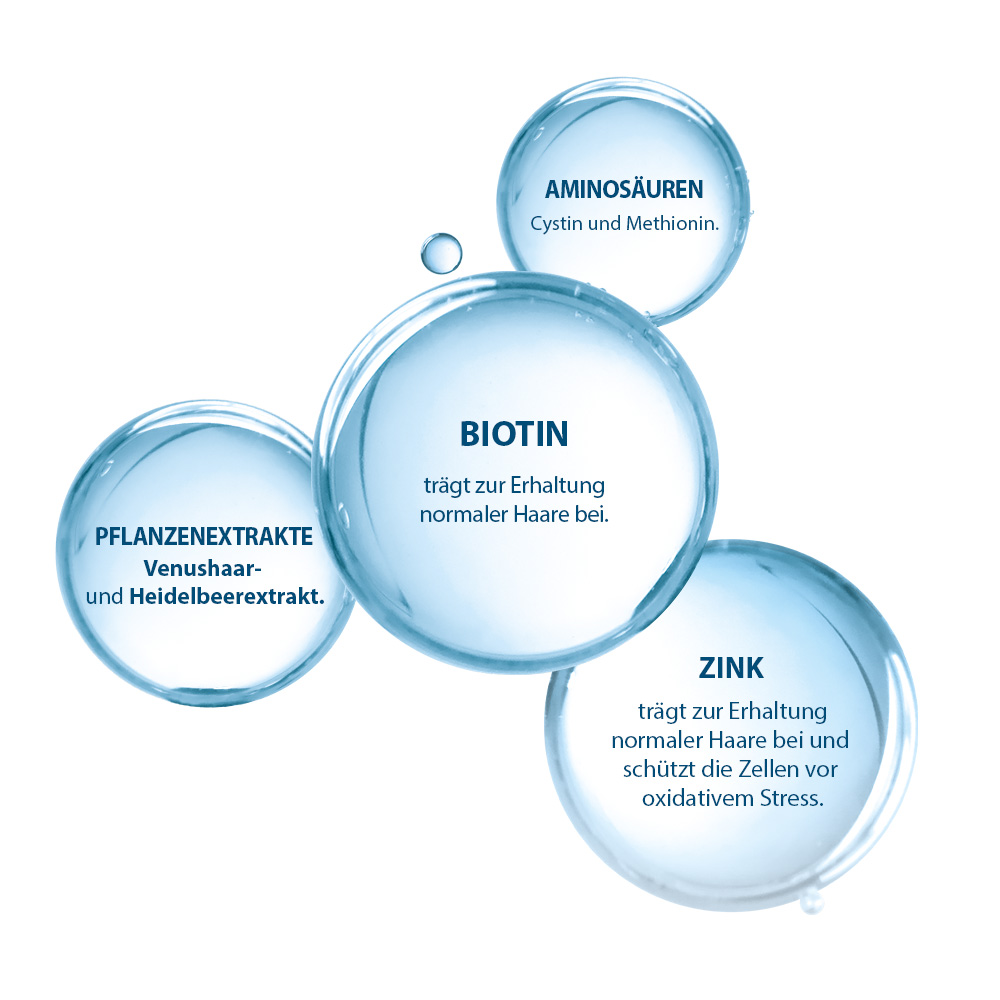 - Biotin und Zink tragen zur Erhaltung normaler Haare bei