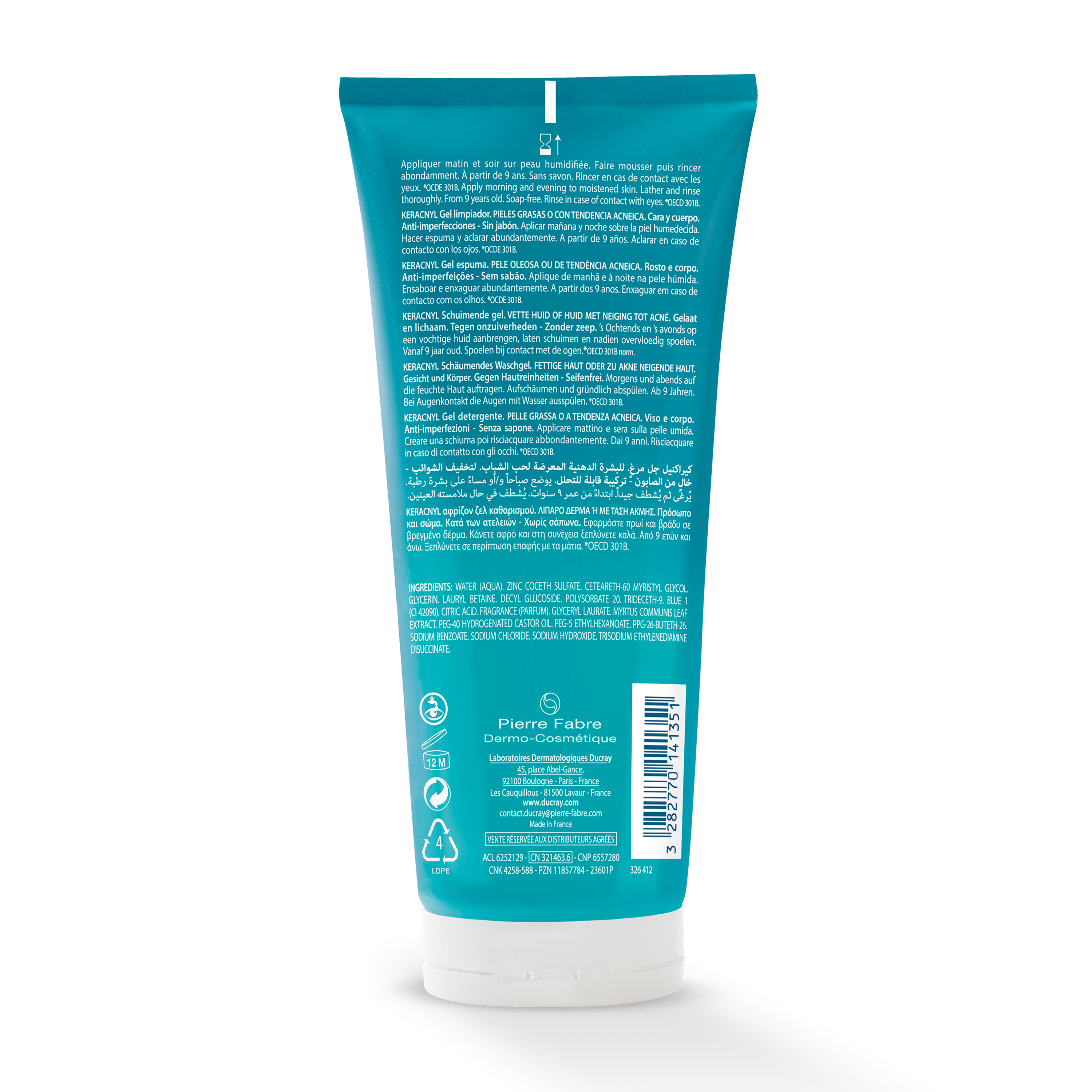 KERACNYL Waschgel reinigt und klärt sanft die zu Akne neigende Haut. Das Waschgel ist seifenfrei und für Gesicht und Körper geeignet. Aufgrund der sehr guten Verträglichkeit ist das Waschgel auch in Kombination mit topischen Anti-Akne-Präparaten erwiesen. Das Waschgel ist nicht komedogen und basiert auf einer biologisch abbaubaren Formulierung.