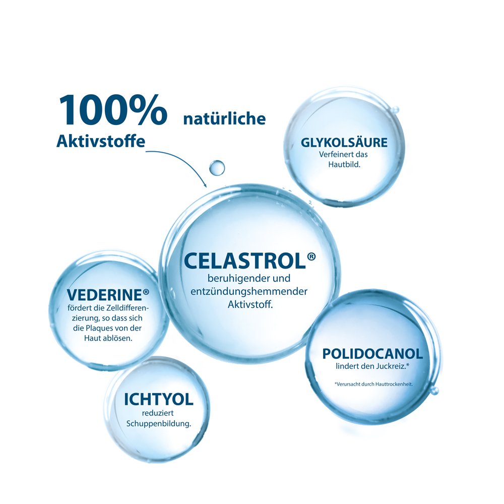 Unterstützende Pflege bei Plaque-Psoriasis mit entzündeter, geröteter Haut für die Kopfhaut und einzelne Körperstellen. 1 bis 2-mal täglich auf die betroffene Körperstelle, über 4 Wochen auftragen Das Konzentrat KERTYOL P.S.O. Zur lokalen Anwendung kann als Begleitpflege zur Psoriasis-Therapie ergänzend oder nach medikamentöser Behandlung angewendet werden.