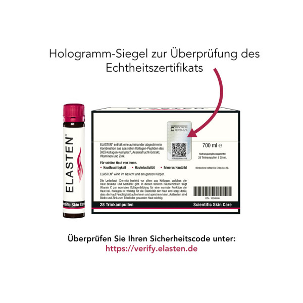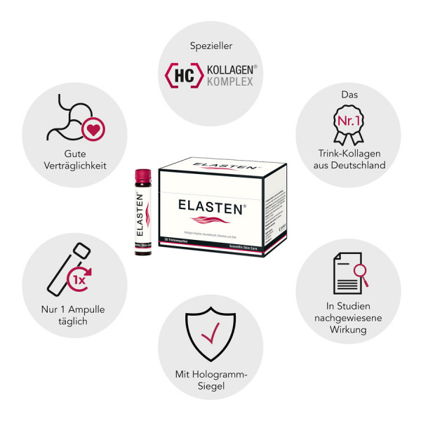 - DER SCHLÜSSEL ZU SCHÖNER HAUT: Mit ELASTEN® verbessern Sie die Elastizität, Festigkeit, Feuchtigkeit und Spannkraft der Haut. Weniger Falten und eine straffere Haut im Gesicht und am ganzen Körper.
