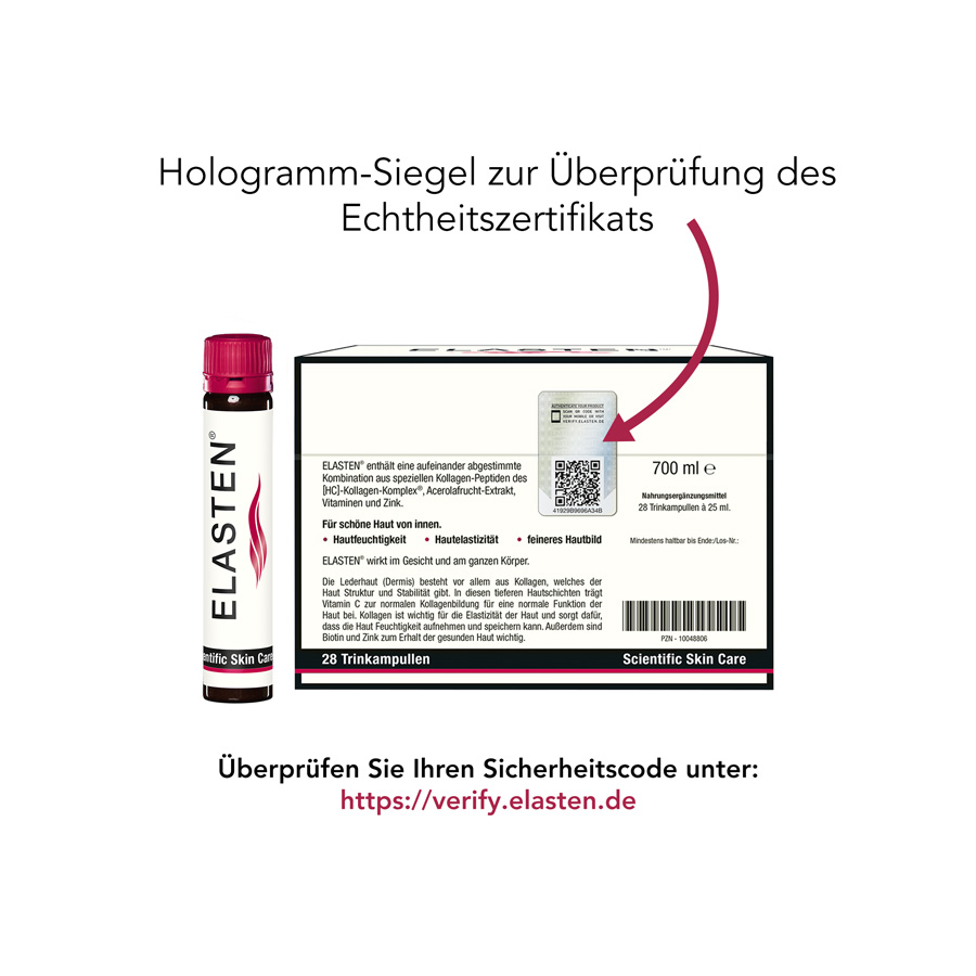 Bisher haben wir unsere Haut nur von außen mit Cremes und Seren gepflegt. Jetzt wissen wir, wie wir die Ursache von Falten und schlaffer Haut angehen. Das Problem entsteht weit unter der Oberfläche in den tiefen Hautschichten. Dermatologen haben mit ELASTEN® nach jahrelanger Forschung ein Trink-Kollagen entwickelt, das nachhaltig die Schönheit von innen unterstützt.