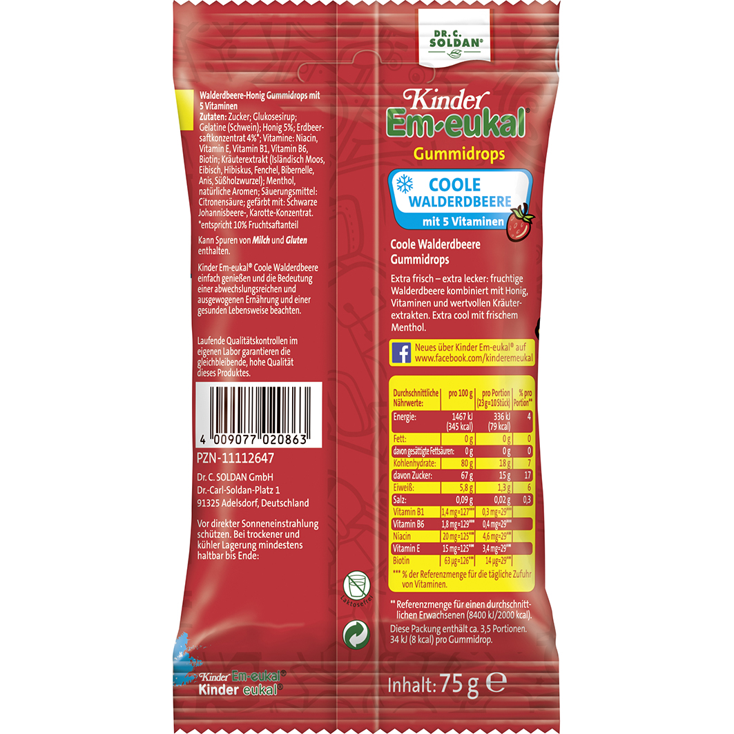 EM-EUKAL Kinder Gummidrops coole Walderdbeere zh.