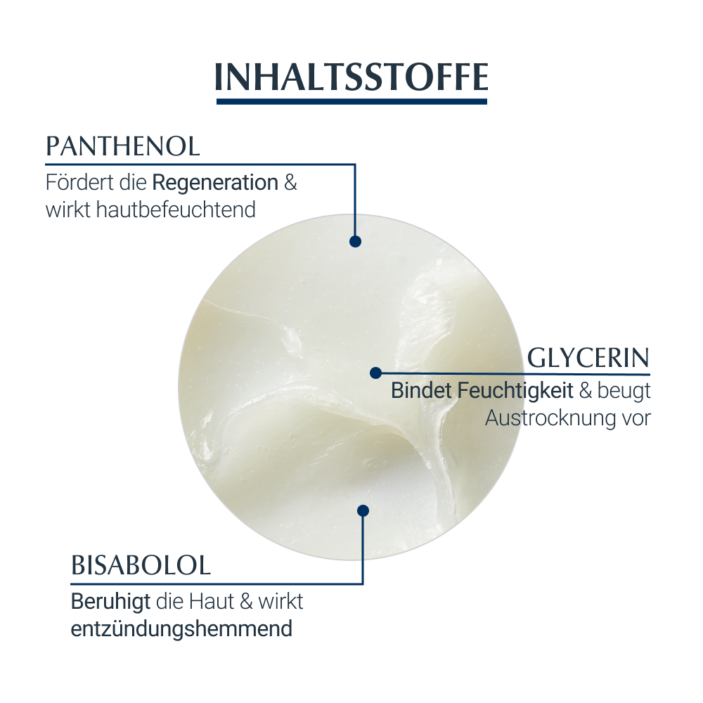Paraffinum Liquidum, Cera Microcristallina, Ceresin, Lanolin Alcohol (Eucerit®), Panthenol, Glycerin, Bisabolol