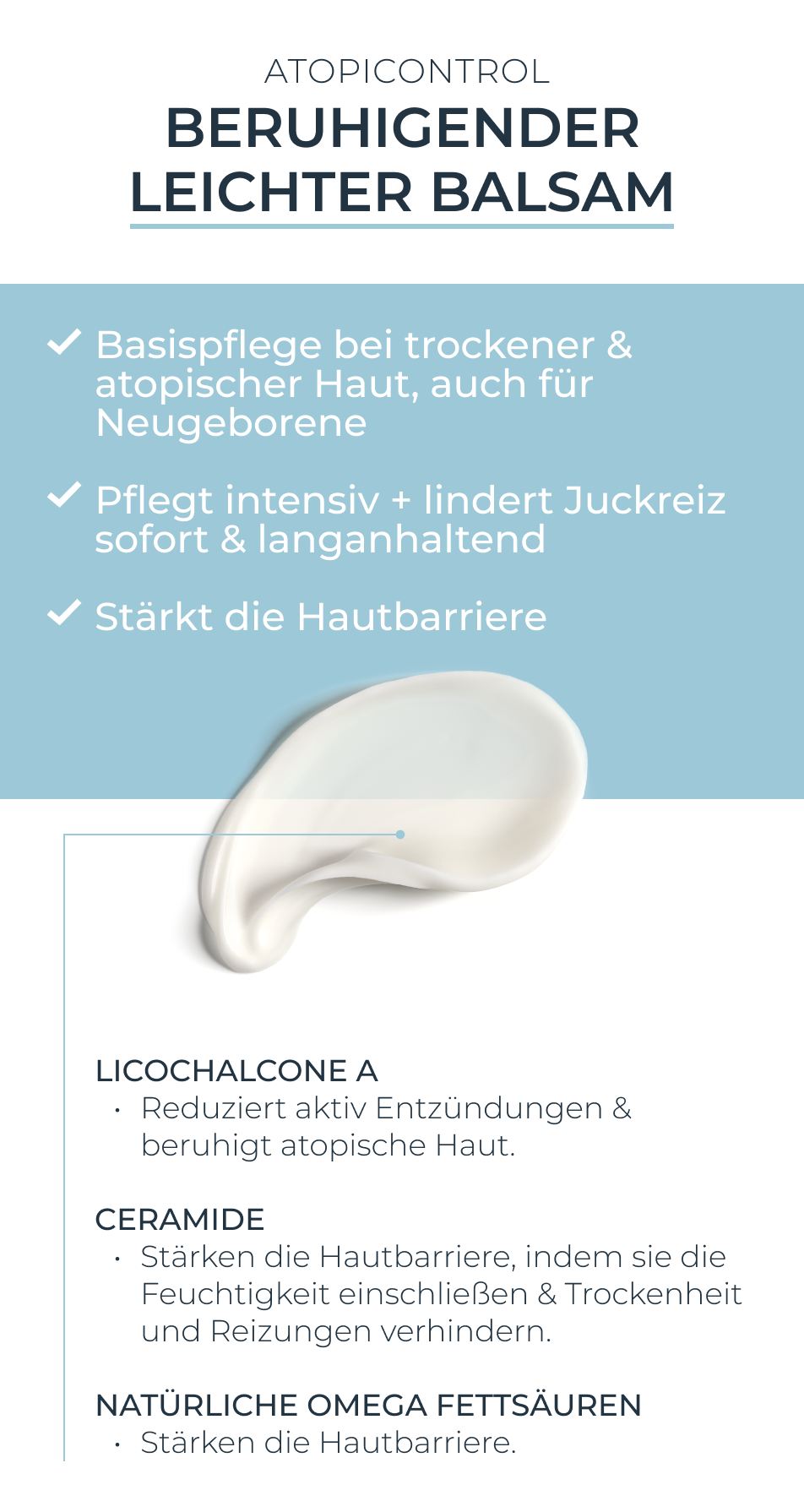 • Juckreiz wird gelindert, die Schlafqualität verbessert und die Hautbarriere gestärkt