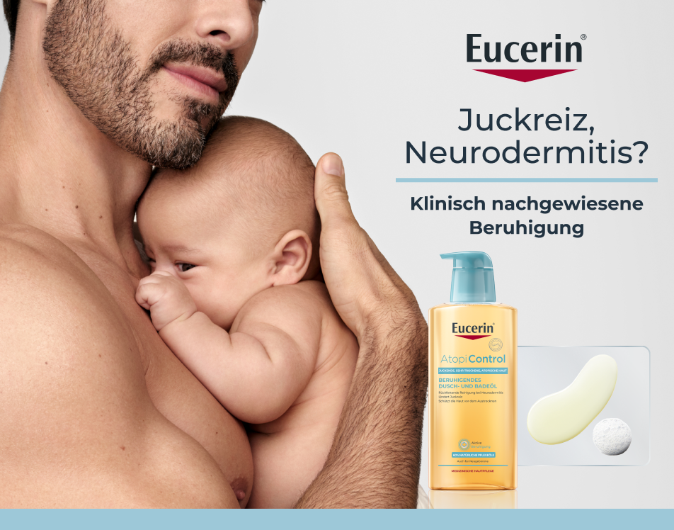 Das Eucerin AtopiControl Dusch-und Badeöl ist speziell für die sanfte Reinigung und zur Beruhigung atopischer Haut geeignet. Das Produkt eignet sich zur Körperpflege bei Neurodermitis während akuter wie auch in symptomfreien Phasen. Die Formel enthält 60% natürliche Pflegeöle und sorgt damit bei sehr trockener, gereizter und zu Neurodermitis neigender Haut schon beim Duschen und Baden für intensive Rückfettung. Das Hautgefühl wird spürbar geschmeidiger, die Haut wird vor dem Austrocknen geschützt und Juckreiz beruhigt.