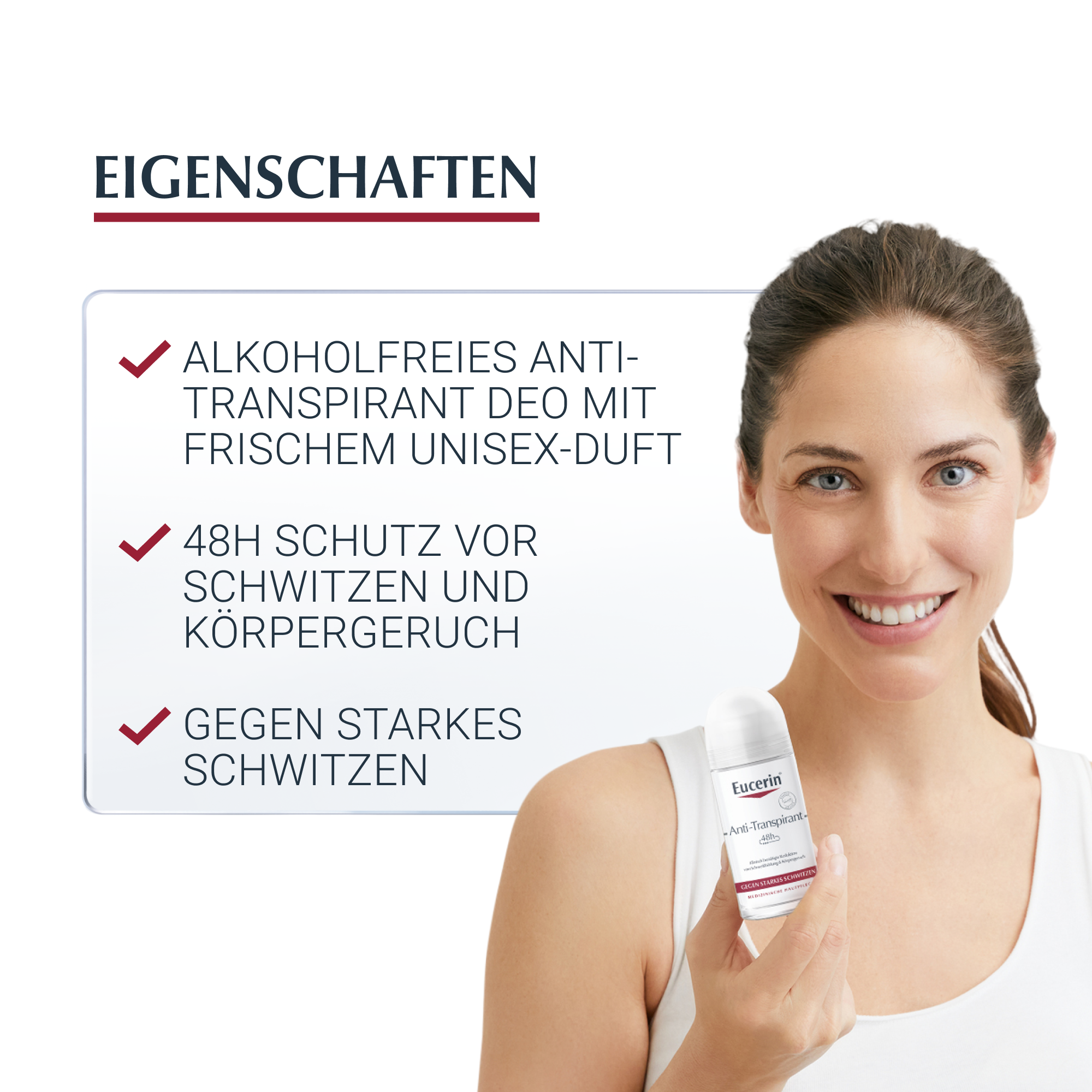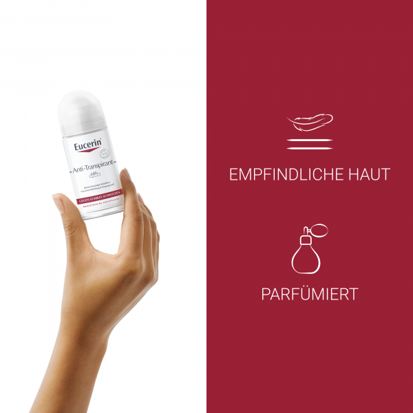 Das Eucerin Deodorant Empfindliche Haut 24h Roll-on bietet zuverlässigen Deo Schutz für empfindliche Haut. Mit dem Deodorant wird nachweislich die Aktivität der geruchsbildenen Bakterien reduziert und es wirkt so für 24 Stunden gegen Körpergeruch im Achselbereich. Dabei ist der Deo Roller sanft zu empfindlicher Haut und auch bei Deo-Unverträglichkeit geeignet.