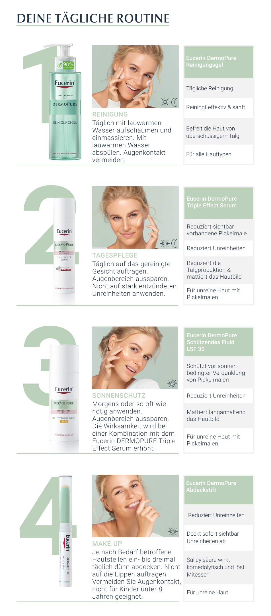 • Auch während einer medizinischen Aknetherapie sowie der Schwangerschaft geeignet