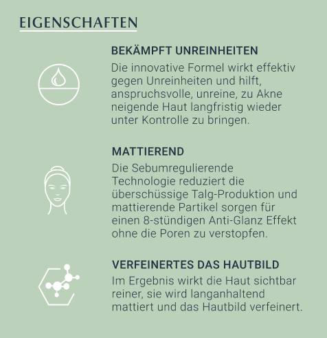 Das Eucerin DermoPure Mattierende Fluid hilft effektiv bei anspruchsvoller, unreiner, zu Akne neigender Haut und Pickeln. Außerdem können die Unreinheiten langfristig kontrolliert werden. Die Gesichtspflege kombiniert mehrere Inhaltsstoffe für ein reineres und mattiertes Hautbild: Salicylsäre reduziert Hautunreinheiten und beugt ihrer Neuentstehung vor, Licochalcone A beruhigt bei Hautirritationen und reduziert Gesichtsrötungen, die sebumregulierende Technologie hilft die überschüssige Talg-Produktion zu hemmen und mattierende Partikel sorgen für einen 8-stündigen Anti-Glanz Effekt, ohne die Poren zu verstopfen.