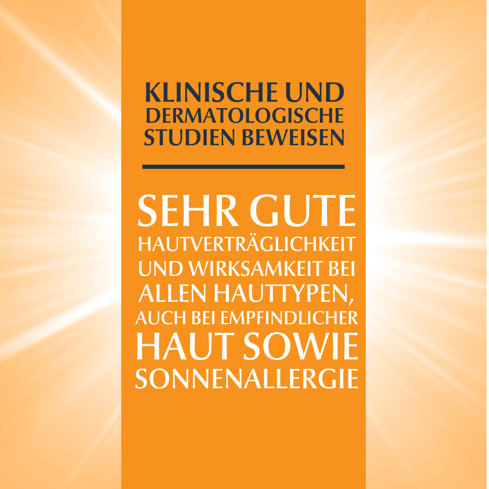 Empfohlen für alle Hauttypen sowie bei zu Sonnenallergie neigender Haut, z.B. Polymorpher Lichtdermatose. Auch für sehr empfindliche Kinderhaut geeignet.