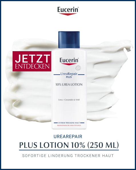 Die Eucerin UreaRepair PLUS Lotion 10% pflegt als Körperlotion hochwirksam sehr trockene bis extrem trockene Haut. Die reichhaltige Körpercreme schützt 48 Stunden vor Trockenheit und lindert die Anzeichen trockener Haut, wie Spannungsgefühl, Juckreiz und Schuppung sofort sowie langanhaltend. Sie zieht schnell ein, macht die Haut glatter und geschmeidiger und stärkt ihre Widerstandskraft.