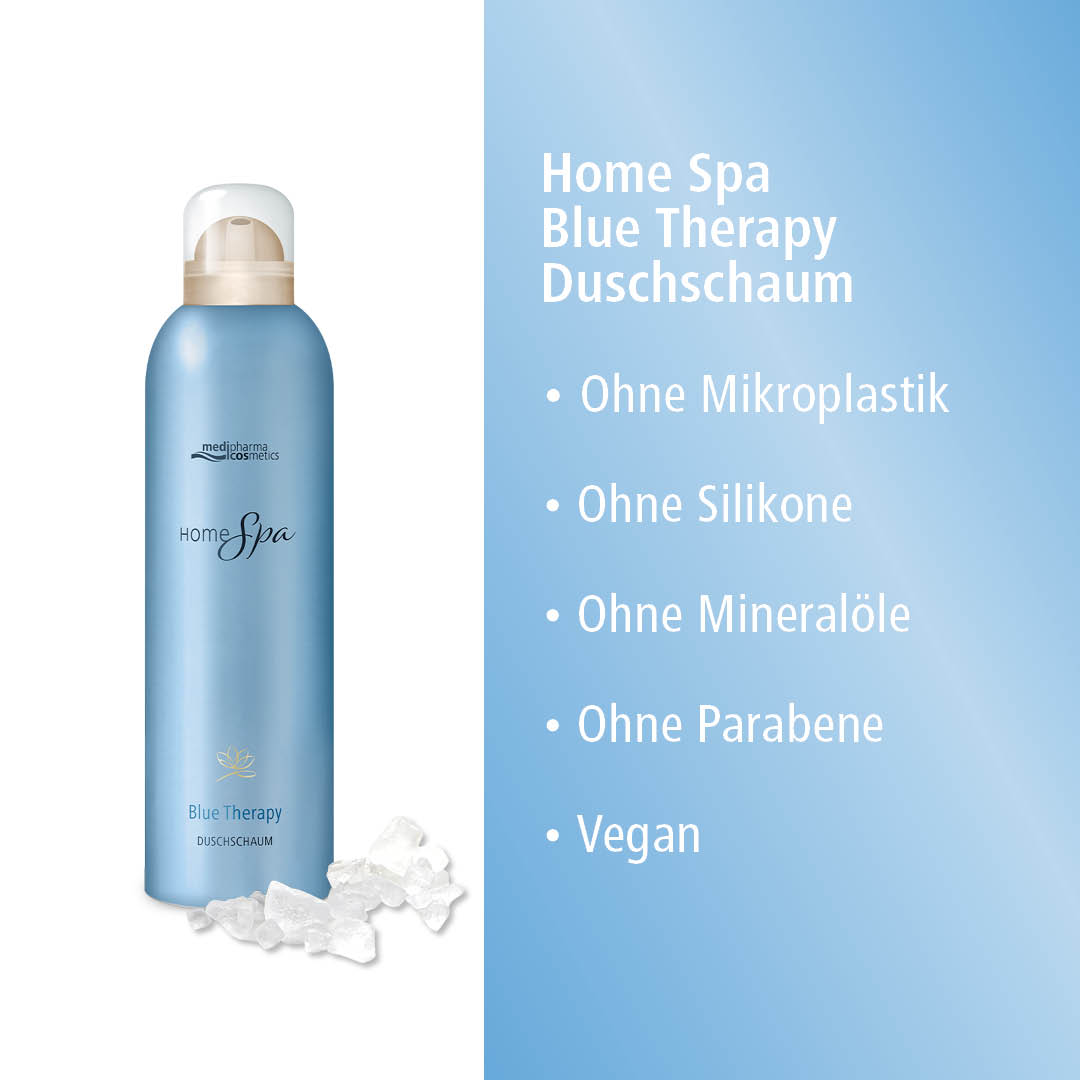 Der Duschschaum Blue Therapy von medipharma cosmetics reinigt Ihre Haut sanft und schenkt Ihnen ein erfrischendes Duscherlebnis. Das Duschgel verwandelt sich bei Kontakt mit Wasser zu einem fein-cremigen Schaum, der sich weich auf die Haut legt und sie geschmeidig macht. Während der Anwendung verströmt der Duschschaum sein intensives Aroma und lässt Sie gedanklich ans Meer reisen. Tauchen Sie ab und genießen Sie Ihren Wellness-Moment! Die Haut wird nachhaltig mit Aloe Vera, Mandelöl, Vitamin E und einem Extrakt aus Meeresmineralien gepflegt.