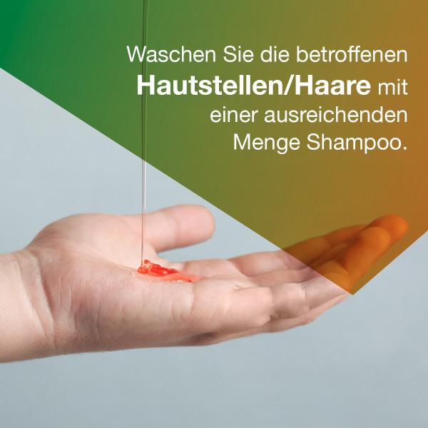 Waschen Sie mit den Arzneimittel Haare und Kopfhaut.