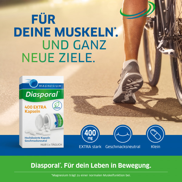 Die Kapseln mit extra viel Magnesium: jetzt auch vegan. Die Produkte der Diasporal® EXTRA-KLASSE sind hochdosiert. Eine Kapsel pro Tag versorgt den Körper mit 400mg Magnesium und trägt so zur Deckung eines erhöhten Bedarfs bei.