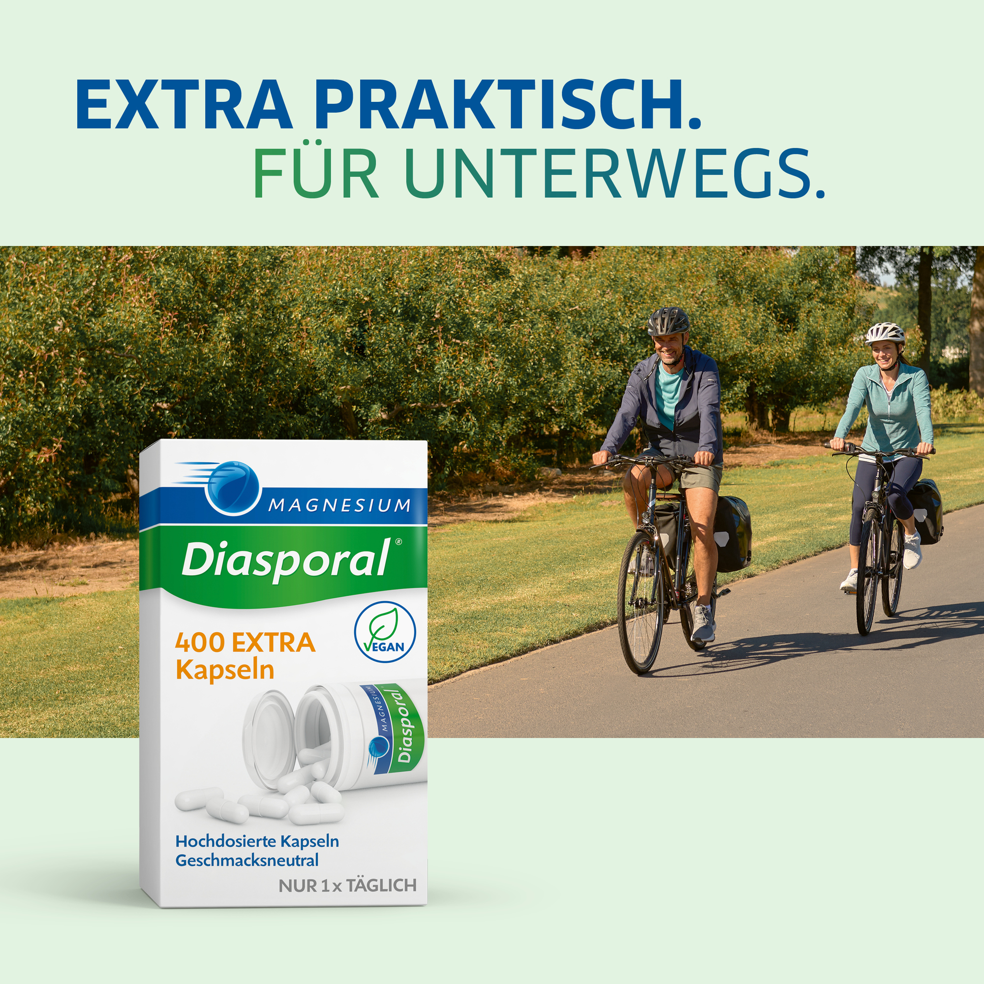 Magnesium-Diasporal® 400 EXTRA Kapseln sind die ideale Produktvariante für alle, die im Alltag viel in Bewegung sind.