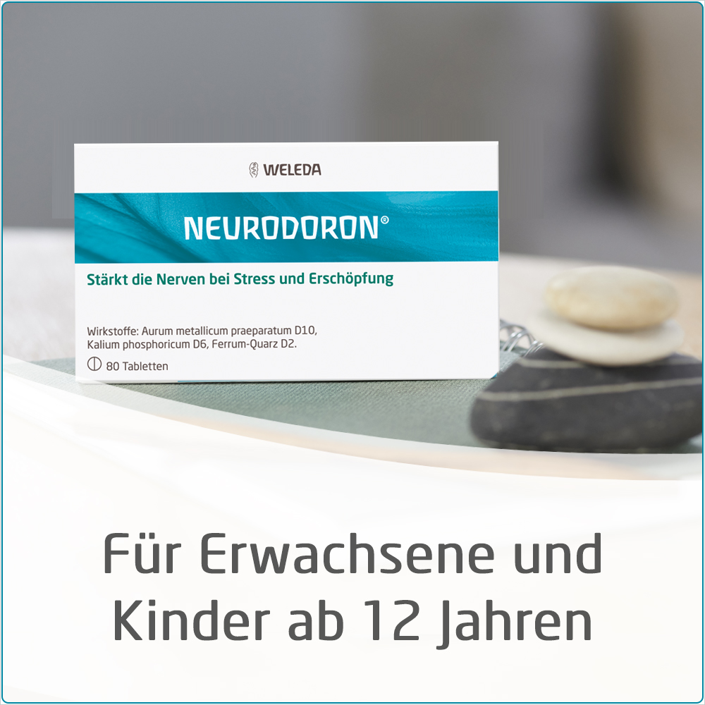 Möglichkeiten der Behandlung: Um das innere Gleichgewicht zu bewahren, können ein achtsamer Umgang mit sich selbst und Übungen zur Stressbewältigung hilfreich sein. Weleda bietet mit Neurodoron® Tabletten eine natürliche Hilfe an, die das Nerven- und Sinnessystem stabilisiert und das seelische und körperliche Gleichgewicht stärkt. Neurodoron® Tabletten helfen bei stressbedingten Angst- und Unruhezuständen, Kopfschmerzen und depressiver Verstimmung.