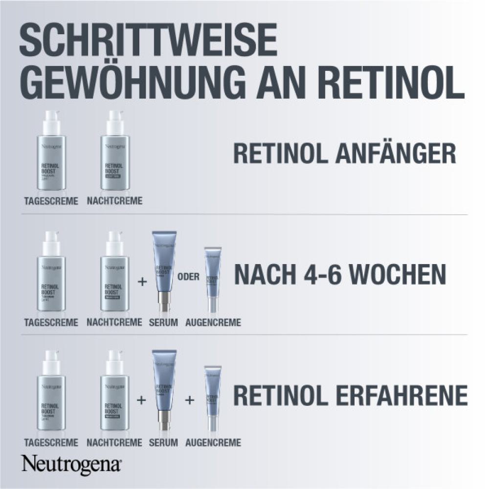 - Das hoch wirksame Neutrogena Retinol Boost Serum bekämpft sichtbare Zeichen der Hautalterung: Falten, verringerte Straffheit, müde Haut, Trockenheit und Pigmentflecken. Für jünger und gesund aussehende Haut