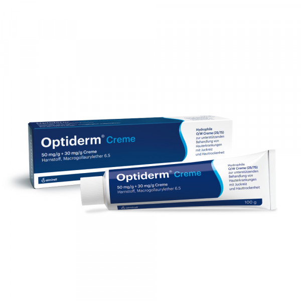 Optiderm enthält als einziges Arzneimittel eine Kombination aus den Wirkstoffen Urea (Harnstoff) und Polidocanol. Es pflegt die Haut und spendet intensiv Feuchtigkeit.