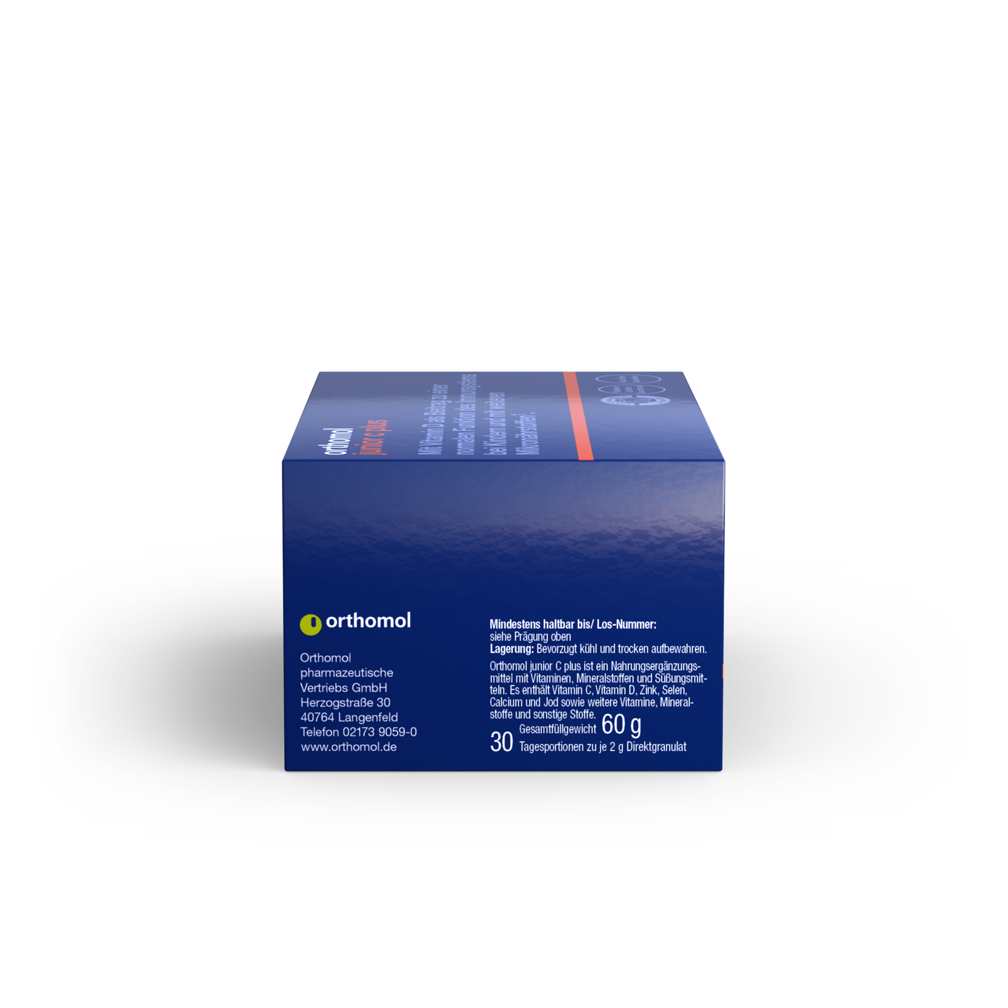 Orthomol junior C plus ist ein Nahrungsergänzungsmittel für Kinder. Mit Vitamin D als Beitrag zu einer normalen Funktion des Immunsystems bei Kindern und mit weiteren Mikronährstoffen1.