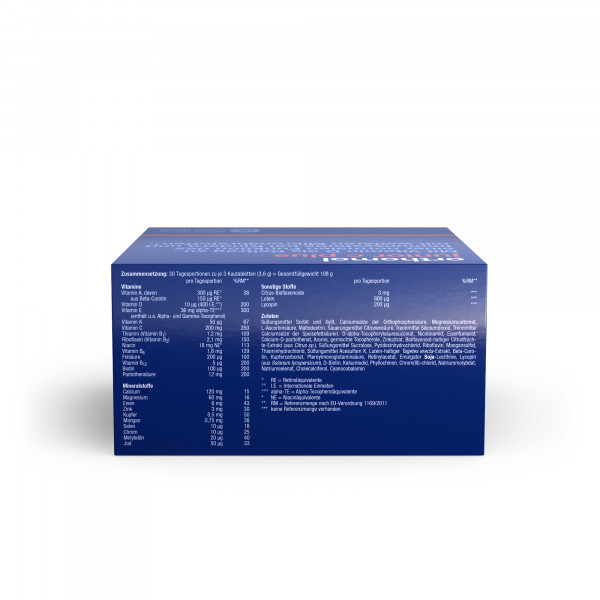 OrthomolNahrungsergänzungsmittel sind kein Ersatz für eine ausgewogene und abwechslungsreiche Ernährung und eine gesunde Lebensweise. Die angegebene empfohlene tägliche Verzehrsmenge darf nicht überschritten werden. Außerhalb der Reichweite von kleinen Kindern aufbewahren.