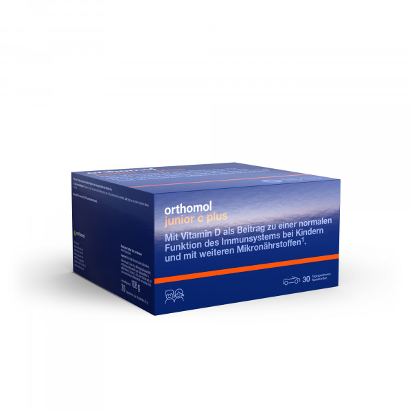 Orthomol junior C plus ist ein Nahrungsergänzungsmittel für Kinder. Mit Vitamin D als Beitrag zu einer normalen Funktion des Immunsystems bei Kindern und mit weiteren Mikronährstoffen1.
