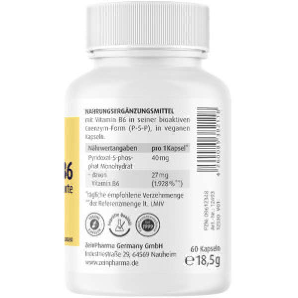 ·        Bioaktive und reine Coenzym-Form (Pyridoxal-5-Phosphat) kann direkt im Stoffwechsel wirken