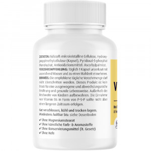 Füllstoff: mikrokristalline Cellulose, Hydroxypropylmethylcellulose (Kapsel), Pyridoxal-5-phosphat-Monohydrat, Antioxidationsmittel: Ascorbylpalmitat