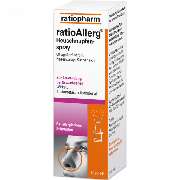 ratioAllerg® Heuschnupfenspray ist ein Kortikoid mit entzündungshemmender Wirkung zur Anwendung in der Nase (Rhinologikum).