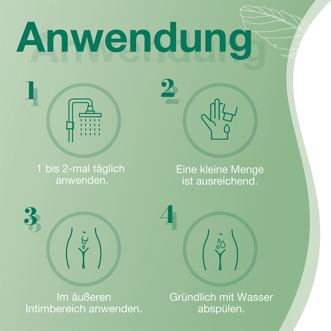 Wie ein normales Duschgel unter der Dusche, in der Badewanne oder dem Bidet ein- bis zweimal täglich verwenden. Vor Gebrauch schütteln.