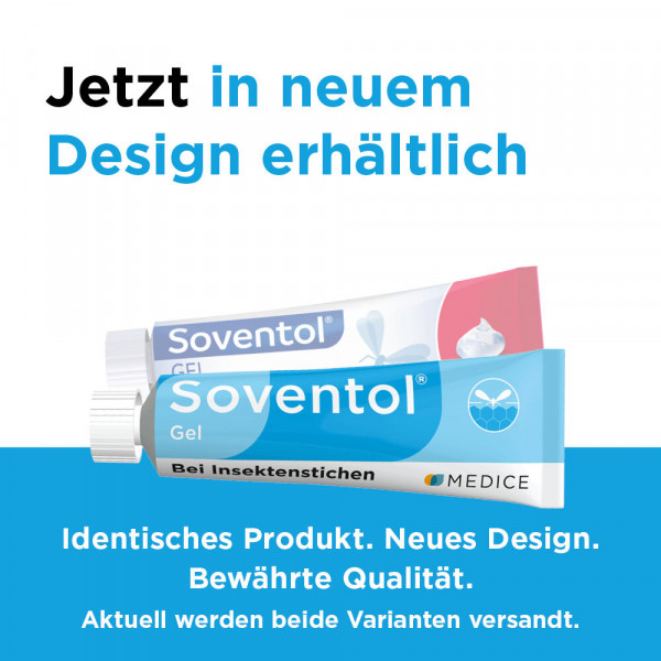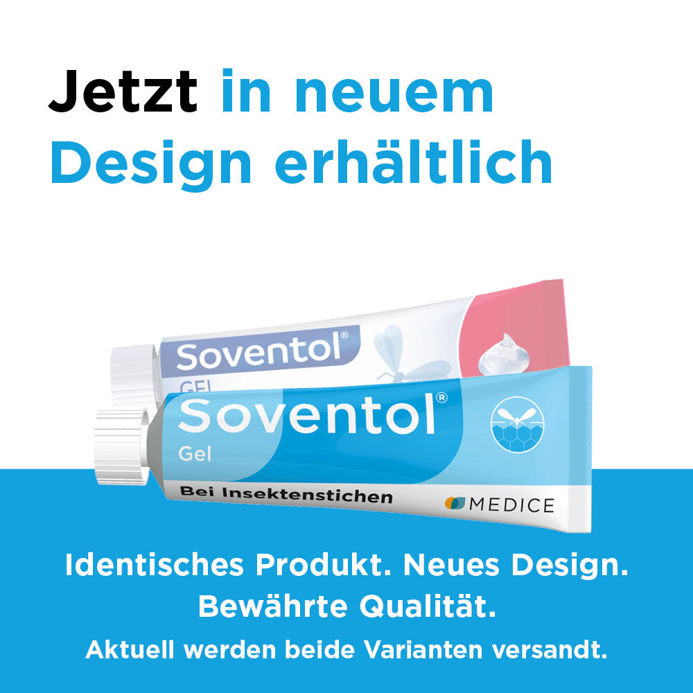 Bei Insektenstichen ist Soventol® Gel ein echter Klassiker für die ganze Familie! Es nimmt die Rötung und lindert den Juckreiz – schnell und langanhaltend zugleich. Denn nur Soventol® Gel enthält das Antihistaminikum Bamipin, das für seinen schnellen Wirkeintritt und den langen Wirkeffekt bekannt ist. Dies wurde in unterschiedlichen Studien bereits mehrfach gezeigt. Dank der sehr guten Verträglichkeit ist Soventol® Gel bereits für Kleinkinder geeignet.