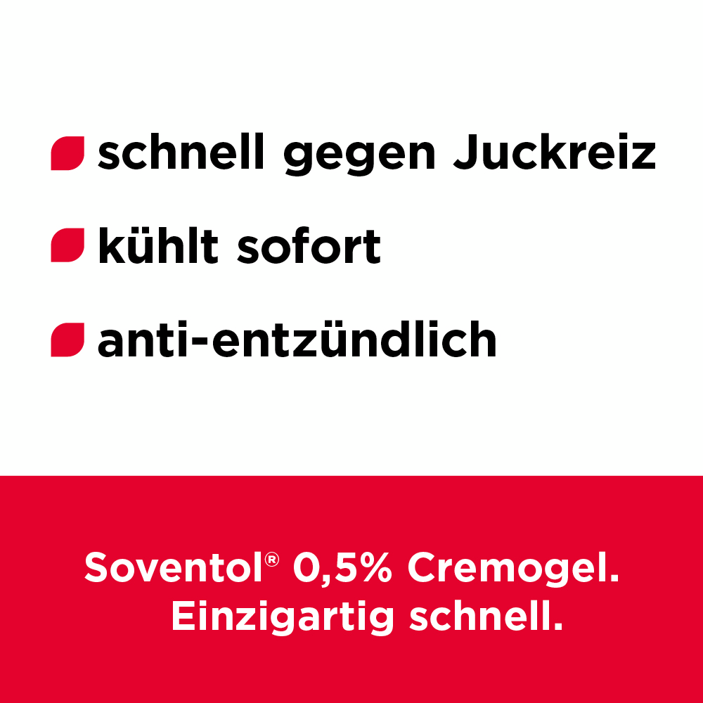 Akute und besonders ausgeprägte Haut-Irritationen wie zum Beispiel gereizte Sommerhaut (Sonnenbrand, Sonnenallergie, Mallorca-Akne), entzündete Insektenstiche und starker Juckreiz erfordern eine effektive Form der Behandlung. Hier hat sich Soventol® HydroCortisonACETAT 0,5% Cremogel bestens bewährt.