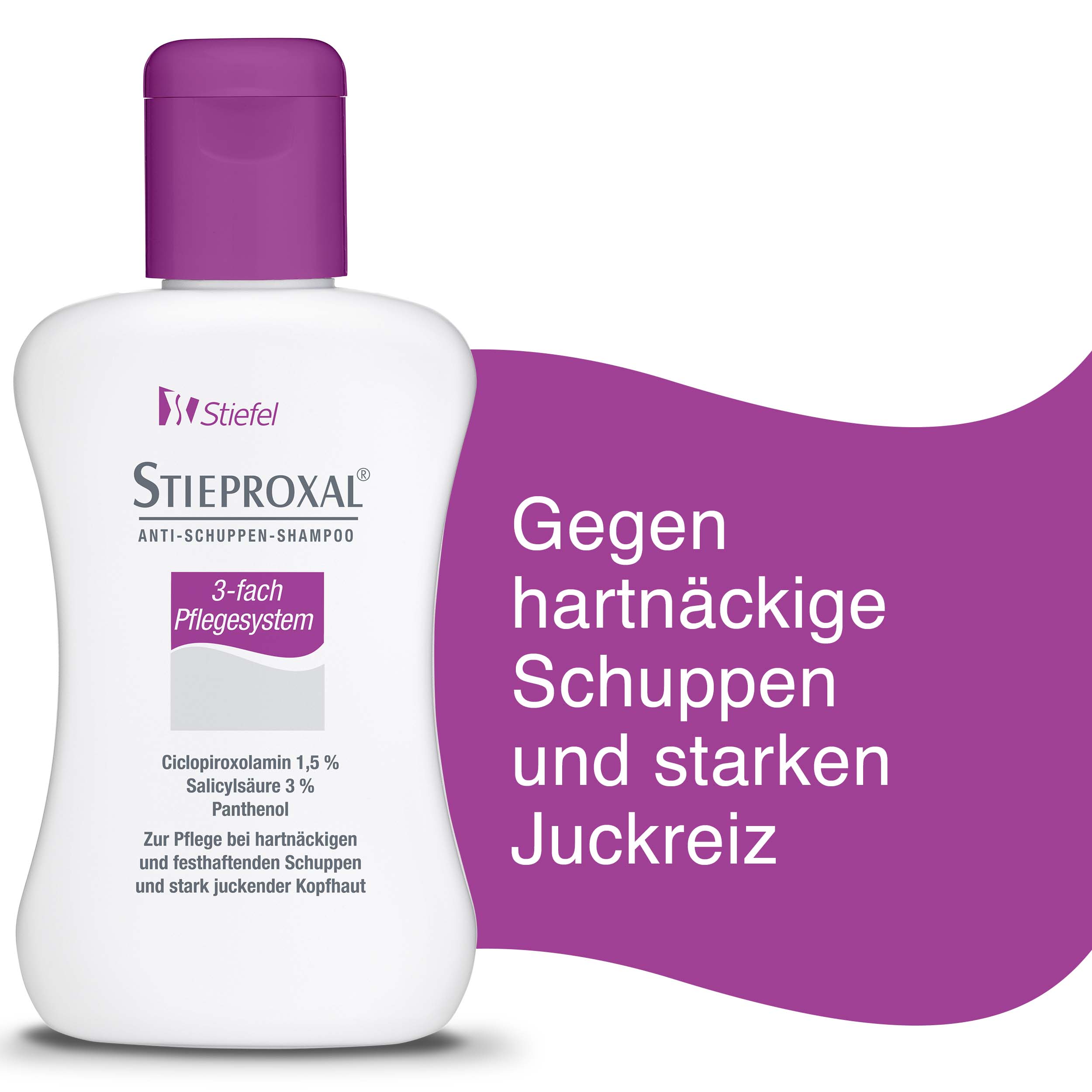 • STIEPROXAL zur Pflege bei hartnäckigen und festhaftenden Schuppen und stark juckender Kopfhaut.