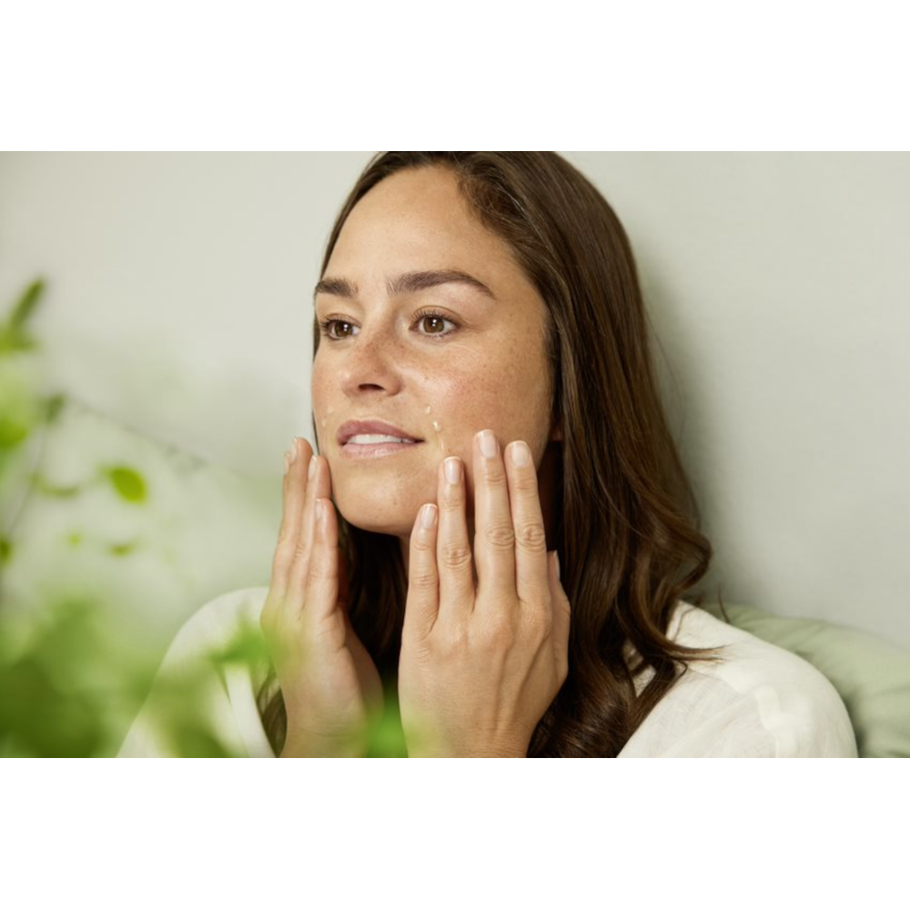 Sanft in die gereinigte Haut von Gesicht, Hals und Dekolleté einklopfen. Danach Tages- oder Nachtpflege verwenden.