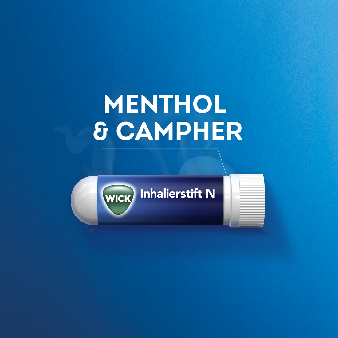 Erkältungssymptome wie eine verstopfte Nase können belastend sein.Testen Sie WICK Inhalierstift N. Die im WICK Inhalierstift N enthaltenen Wirkstoffe Menthol und Campher entfalten gemeinsam ihre wohltuende Wirkung, welche die Nase befreit und Sie unbeschwert aufatmen lässt. Der WICK Inhalierstift N ist immer und überall schnell und unkompliziert einsetzbar.